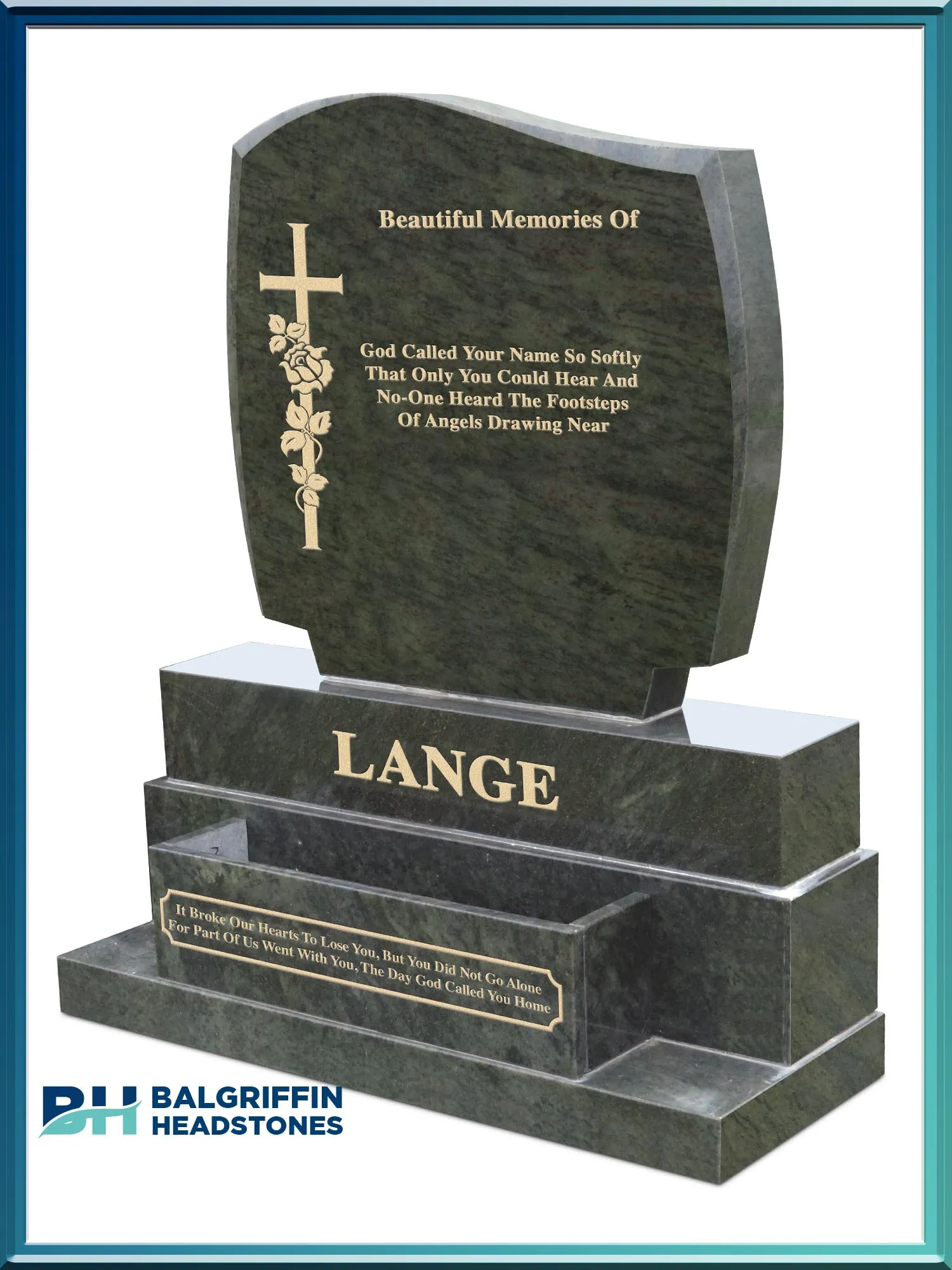 With the panoramic viewpoint that comes from our current position of more than 35 years in the memorial industry, and now into the second decade of the twenty-first century, we can see clearly that our innovative dedicated mastery to our craft and fervent obligation to our customers to provide the highest standards is as strong now as it was in the first promising year of our company Balgriffin Headstones. Taking every available opportunity that promised to bring us to the level of success and stature. Balgriffin Headstones C1.