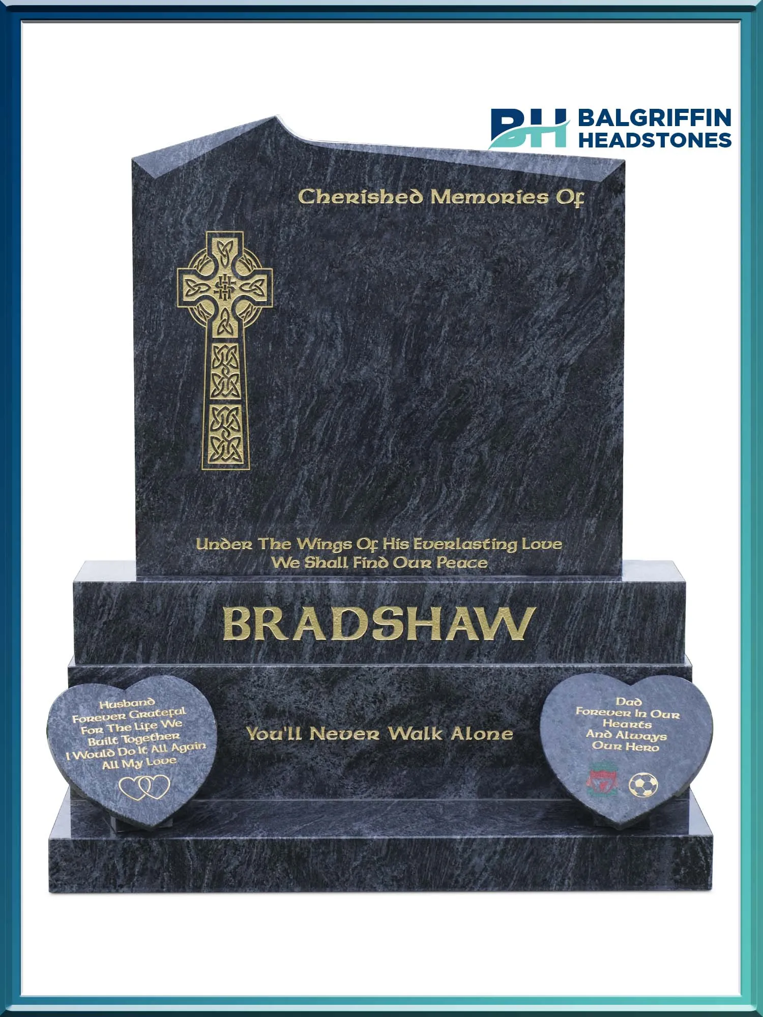With the panoramic viewpoint that comes from our current position of more than 35 years in the memorial industry, and now into the second decade of the twenty-first century, we can see clearly that our innovative dedicated mastery to our craft and fervent obligation to our customers to provide the highest standards is as strong now as it was in the first promising year of our company Balgriffin Headstones. Taking every available opportunity that promised to bring us to the level of success and stature. Balgriffin Headstones Murphy No 5.