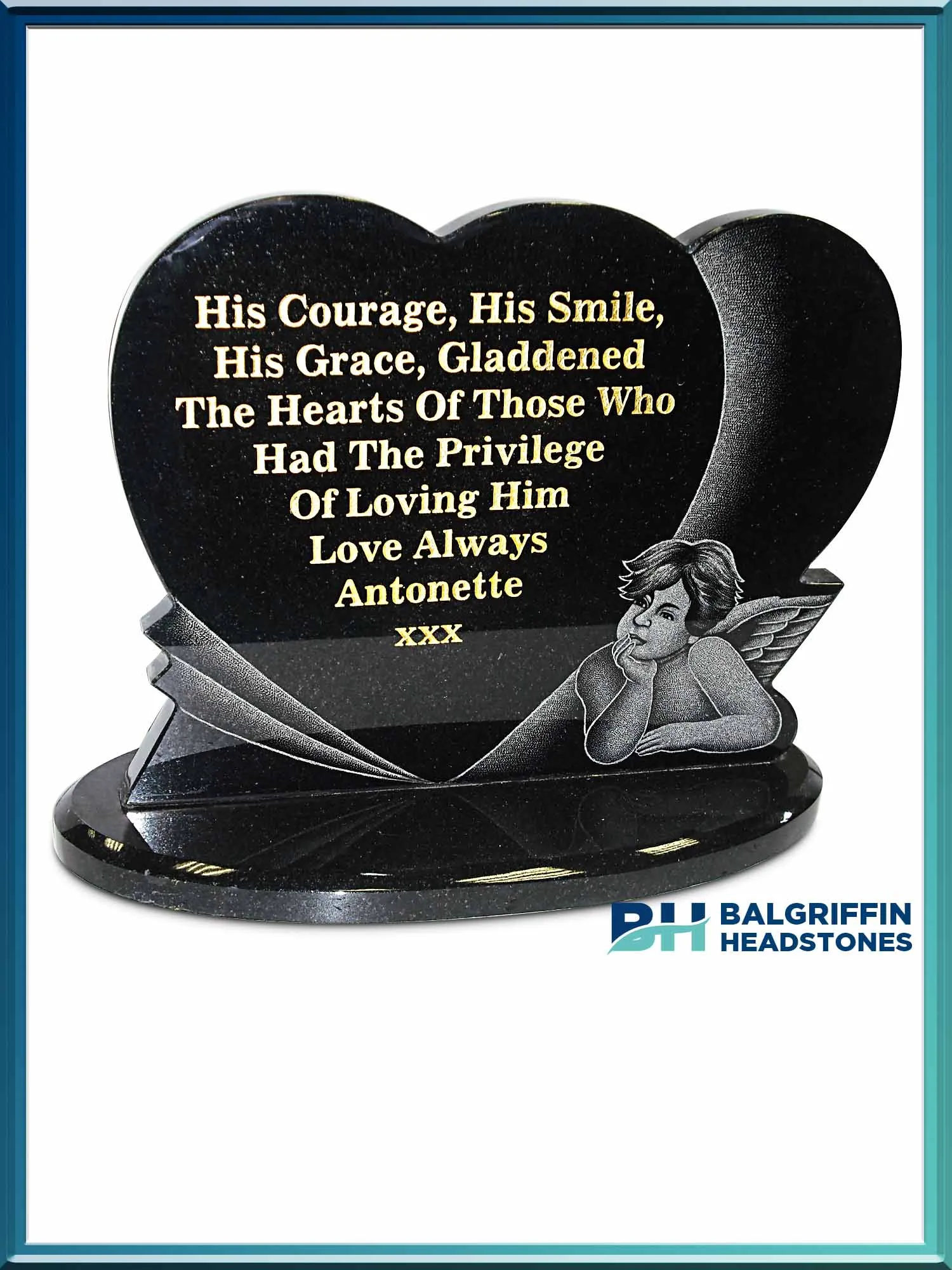 We can also provide advice on the wording on the final inscription or epitaph and assist you on choosing an appropriate design incorporated in your memorial to reflect the life and achievements of your loved one. Photographs can be attached to the memorial or on any sundry items such as hearts, plaques, books etc as illustrated throughout the diverse pages of this beautiful presentation website.