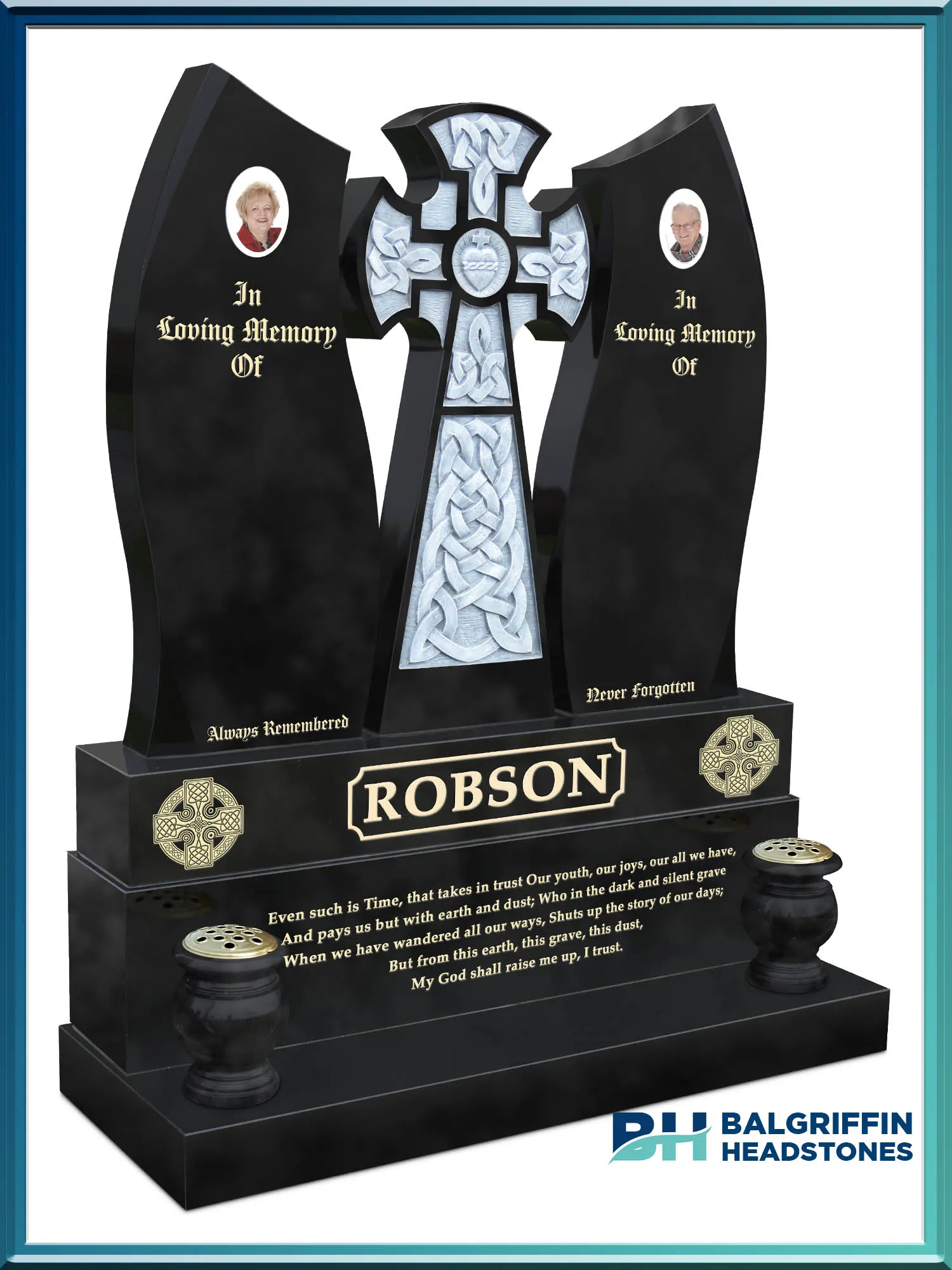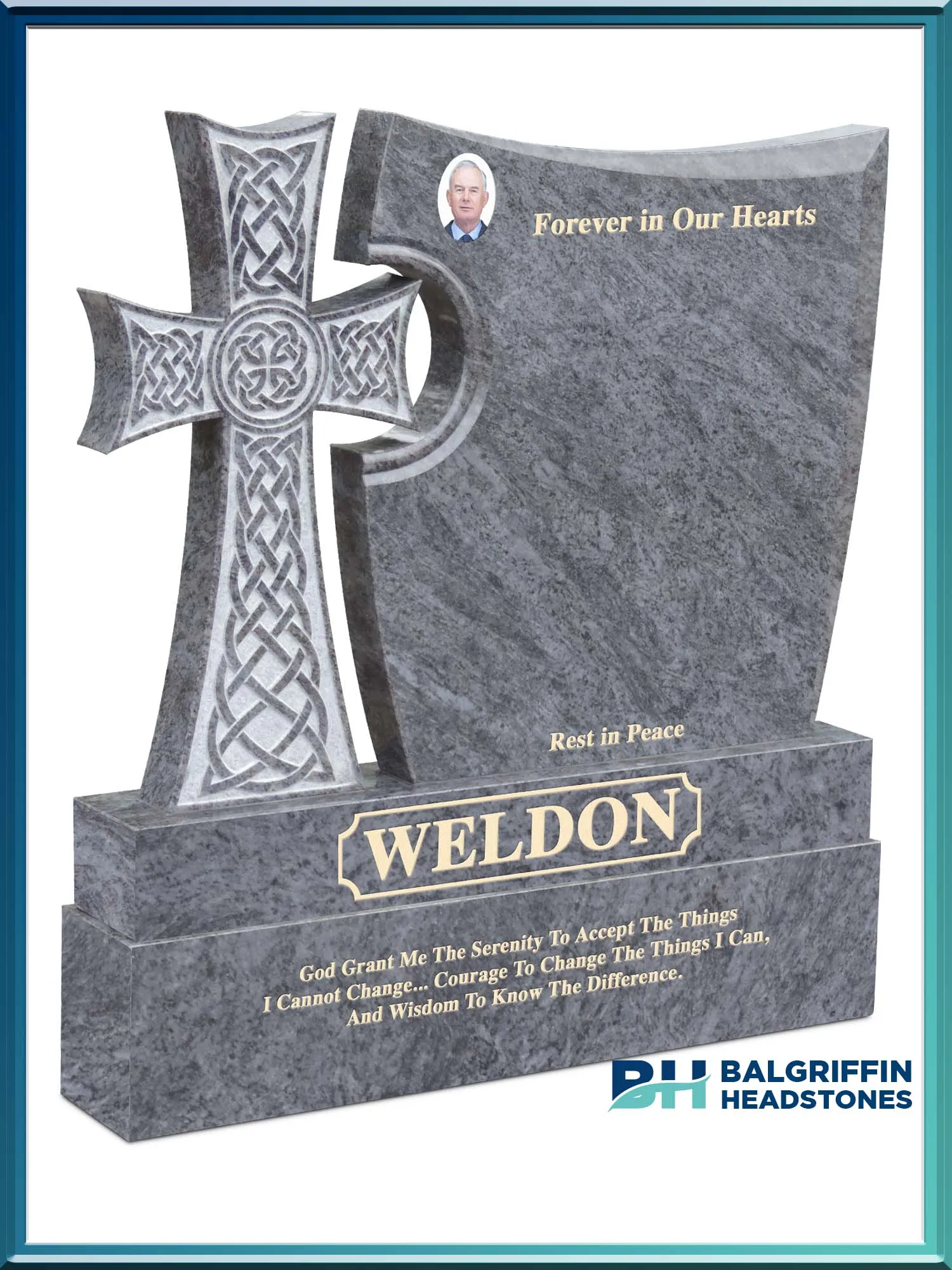 With the panoramic viewpoint that comes from our current position of more than 35 years in the memorial industry, and now into the second decade of the twenty-first century, we can see clearly that our innovative dedicated mastery to our craft and fervent obligation to our customers to provide the highest standards is as strong now as it was in the first promising year of our company Balgriffin Headstones. Taking every available opportunity that promised to bring us to the level of success and stature. Balgriffin Headstones Side Cross.