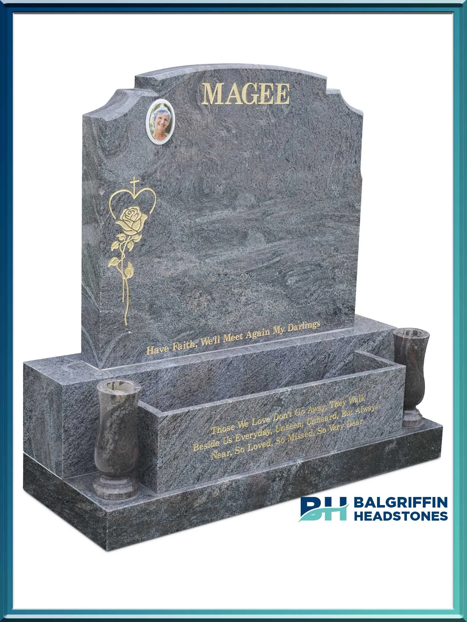 Today, people purchasing a headstone for the first time or even replacing one is a serious commitment. And tend to select a monument that resonated with them personally. Perhaps the inclusion of stained glass or a printed or etched section. Altering one piece to make the memorial unique or the way a veined pattern or tone of colour on a granite surface will have a striking presence to one’s individual taste. It is in stark contrast with the way it was just a few generations ago. With such a vast array of choices now and an ever diversifying scope that continue to make the Balgriffin Headstones in the memorial industry one of the most faithful and creatively skilled companies in the field today.